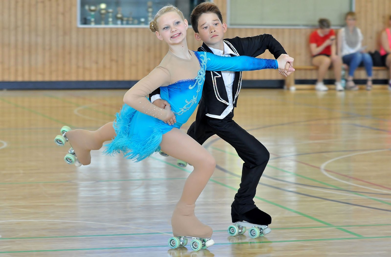Im Rolltanzen gingen erstmals insgesamt 5 Bremer Tanzpaare an den Start. Im Schüler C Rolltanz überzeugten Lisa und Michael auf ganzer Linie und konnten nicht nur das Publikum, sondern auch die Wertungsrichter überzeugen. Durch sehr ausdrucksstarke Pflichttänze und eine rasante Kür gelang es den beiden sich erstmals die Krone zu sichern. Auf Platz 2 landete eine weiteres Bremer Tanzpaar. Milena und Chartri kamen gut durch ihre Programme, harderten jedoch an der einen oder anderen Stelle etwas mit der Größe der Bahn. Kompletiert wurde das Treppchen durch Nathalie und Alexander. Beide liefen einen ausdrucksstarken Kürtanz, müssen aber an der einen oder anderen Stelle noch an Festigkeit und Kniebeuge arbeiten. Der Wettbewerb Schüler A Rolltanz zählte sicherlich zu den Highlights der diesjährigen Wettkämpfe. Beide Tanzpaare brachten insbesondere mit ihren Kürtänzen die Halle zum Beben. Als Belohnung ließ der DRIV die Hoffnung auf eine Nominierung für die diesjährigen Europameisterschaften durchblitzen. Am Ende setzten sich Melanie und Artur knapp vor Antonia und Paul durch. Beide Paare zeigen bereits in jungen Jahren ein enomes Schrittpotenzial und schwierige Hebungen, gepaart mit einem hohen Lauftempo sowie dem besonderen Etwas in der B-Note. Es bleibt zu hoffen, dass diese talentierten jungen Sportler dem Bremer Rollsport noch lange erhalten bleiben, um noch die eine oder andere gute Platzierung in die Hansestadt zu bringen.